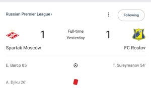 The result dealt a slight blow to Spartak’s title hopes, while Rostov claimed a valuable point on the road after a disciplined performance.