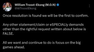 “Once resolution is found, we will be the first to confirm. Any other statement or claim, eSPECIALly demands other than the rightful request written about below, is false,” Troost-Ekong stated. All we want and continue to do is focus on the big games ahead.”